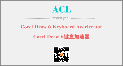 上述内容是“Corel Draw 6 Keyboard Accelerator”作为“ACL”的缩写,解释为“Corel Draw 6键盘加速器”时的信息,以及英文缩略词ACL所代表的英文单词,其对应的中文拼音、详细解释以及在英文中的流行度和相关分类、应用领域及应用示例等。