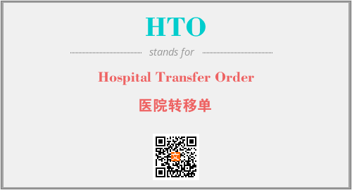 英文缩略词“HTO”经常作为“Hospital Transfer Order”的英文缩写来使用,中文表示:“医院转移单”。本文将详细介绍英文缩写词HTO所代表英文单词,其对应的中文拼音、详细解释以及在英语中的流行度。此外,还有关于缩略词HTO的分类、应用领域及相关应用示例等。