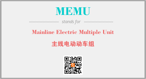 英文缩略词“MEMU”经常作为“Mainline Electric Multiple Unit”的英文缩写来使用,中文表示:“主线电动动车组”。本文将详细介绍英文缩写词MEMU所代表英文单词,其对应的中文拼音、详细解释以及在英语中的流行度。此外,还有关于缩略词MEMU的分类、应用领域及相关应用示例等。