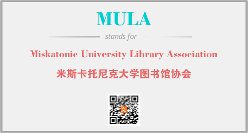 英文缩略词“MULA”经常作为“Miskatonic University Library Association”的英文缩写来使用,中文表示:“米斯卡托尼克大学图书馆协会”。本文将详细介绍英文缩写词MULA所代表英文单词,其对应的中文拼音、详细解释以及在英语中的流行度。此外,还有关于缩略词MULA的分类、应用领域及相关应用示例等。