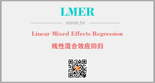 上述内容是“Linear Mixed Effects Regression”作为“LMER”的缩写,解释为“线性混合效应回归”时的信息,以及英文缩略词LMER所代表的英文单词,其对应的中文拼音、详细解释以及在英文中的流行度和相关分类、应用领域及应用示例等。