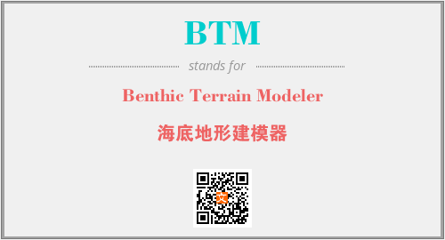 英文缩略词“BTM”经常作为“Benthic Terrain Modeler”的英文缩写来使用,中文表示:“海底地形建模器”。本文将详细介绍英文缩写词BTM所代表英文单词,其对应的中文拼音、详细解释以及在英语中的流行度。此外,还有关于缩略词BTM的分类、应用领域及相关应用示例等。