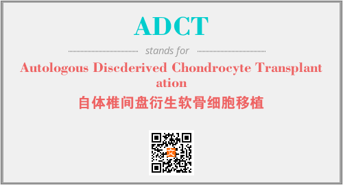 上述内容是“Autologous Discderived Chondrocyte Transplantation”作为“ADCT”的缩写,解释为“自体椎间盘衍生软骨细胞移植”时的信息,以及英文缩略词ADCT所代表的英文单词,其对应的中文拼音、详细解释以及在英文中的流行度和相关分类、应用领域及应用示例等。