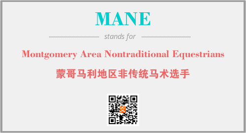 上述内容是“Montgomery Area Nontraditional Equestrians”作为“MANE”的缩写,解释为“蒙哥马利地区非传统马术选手”时的信息,以及英文缩略词MANE所代表的英文单词,其对应的中文拼音、详细解释以及在英文中的流行度和相关分类、应用领域及应用示例等。