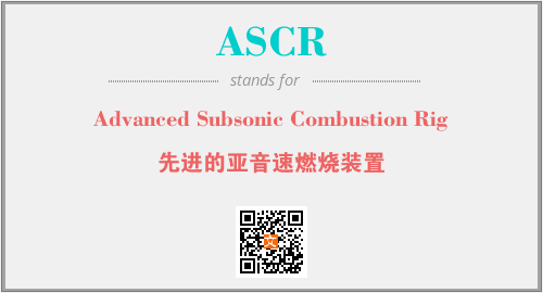 以上为Advanced Subsonic Combustion Rig英文缩略词ASCR的中文解释,以及该英文缩写在英语的流行度、分类和应用领域方面的信息。