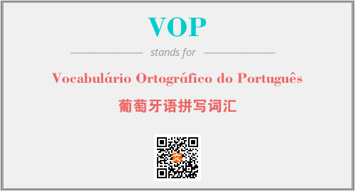 上述内容是“Vocabulário Ortográfico do Português”作为“VOP”的缩写,解释为“葡萄牙语拼写词汇”时的信息,以及英文缩略词VOP所代表的英文单词,其对应的中文拼音、详细解释以及在英文中的流行度和相关分类、应用领域及应用示例等。