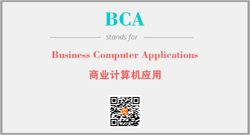 上述内容是“Business Computer Applications”作为“BCA”的缩写,解释为“商业计算机应用”时的信息,以及英文缩略词BCA所代表的英文单词,其对应的中文拼音、详细解释以及在英文中的流行度和相关分类、应用领域及应用示例等。