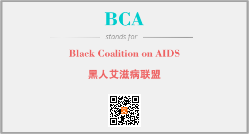 英文缩略词“BCA”经常作为“Black Coalition on AIDS”的英文缩写来使用,中文表示:“黑人艾滋病联盟”。本文将详细介绍英文缩写词BCA所代表英文单词,其对应的中文拼音、详细解释以及在英语中的流行度。此外,还有关于缩略词BCA的分类、应用领域及相关应用示例等。