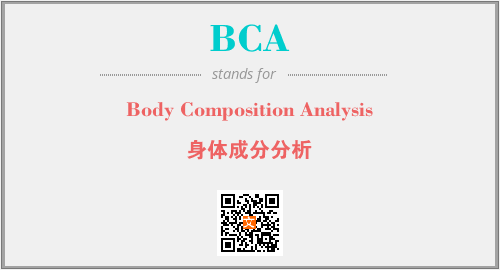 上述内容是“Body Composition Analysis”作为“BCA”的缩写,解释为“身体成分分析”时的信息,以及英文缩略词BCA所代表的英文单词,其对应的中文拼音、详细解释以及在英文中的流行度和相关分类、应用领域及应用示例等。