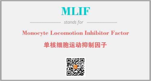 上述内容是“Monocyte Locomotion Inhibitor Factor”作为“MLIF”的缩写,解释为“单核细胞运动抑制因子”时的信息,以及英文缩略词MLIF所代表的英文单词,其对应的中文拼音、详细解释以及在英文中的流行度和相关分类、应用领域及应用示例等。