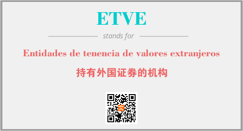 英文缩略词“ETVE”经常作为“Entidades de tenencia de valores extranjeros”的英文缩写来使用,中文表示:“持有外国证券的机构”。本文将详细介绍英文缩写词ETVE所代表英文单词,其对应的中文拼音、详细解释以及在英语中的流行度。此外,还有关于缩略词ETVE的分类、应用领域及相关应用示例等。