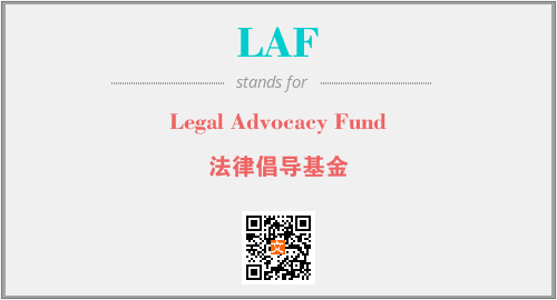上述内容是“Legal Advocacy Fund”作为“LAF”的缩写,解释为“法律倡导基金”时的信息,以及英文缩略词LAF所代表的英文单词,其对应的中文拼音、详细解释以及在英文中的流行度和相关分类、应用领域及应用示例等。