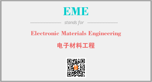 上述内容是“Electronic Materials Engineering”作为“EME”的缩写,解释为“电子材料工程”时的信息,以及英文缩略词EME所代表的英文单词,其对应的中文拼音、详细解释以及在英文中的流行度和相关分类、应用领域及应用示例等。