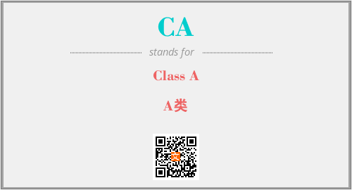 上述内容是“Class A”作为“CA”的缩写,解释为“A类”时的信息,以及英文缩略词CA所代表的英文单词,其对应的中文拼音、详细解释以及在英文中的流行度和相关分类、应用领域及应用示例等。