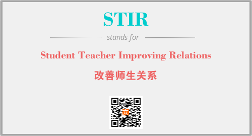 以上为Student Teacher Improving Relations英文缩略词STIR的中文解释,以及该英文缩写在英语的流行度、分类和应用领域方面的信息。