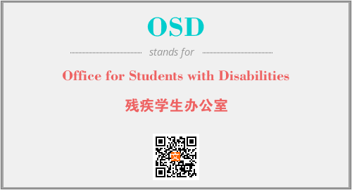 英文缩略词“OSD”经常作为“Office for Students with Disabilities”的英文缩写来使用,中文表示:“残疾学生办公室”。本文将详细介绍英文缩写词OSD所代表英文单词,其对应的中文拼音、详细解释以及在英语中的流行度。此外,还有关于缩略词OSD的分类、应用领域及相关应用示例等。