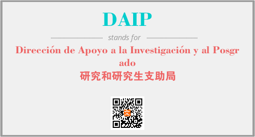 上述内容是“Dirección de Apoyo a la Investigación y al Posgrado”作为“DAIP”的缩写,解释为“研究和研究生支助局”时的信息,以及英文缩略词DAIP所代表的英文单词,其对应的中文拼音、详细解释以及在英文中的流行度和相关分类、应用领域及应用示例等。