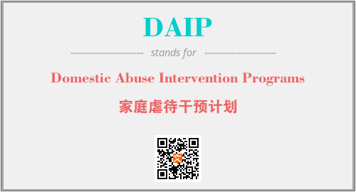 上述内容是“Domestic Abuse Intervention Programs”作为“DAIP”的缩写,解释为“家庭虐待干预计划”时的信息,以及英文缩略词DAIP所代表的英文单词,其对应的中文拼音、详细解释以及在英文中的流行度和相关分类、应用领域及应用示例等。