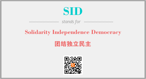 上述内容是“Solidarity Independence Democracy”作为“SID”的缩写,解释为“团结独立民主”时的信息,以及英文缩略词SID所代表的英文单词,其对应的中文拼音、详细解释以及在英文中的流行度和相关分类、应用领域及应用示例等。