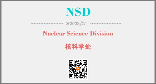 上述内容是“Nuclear Science Division”作为“NSD”的缩写,解释为“核科学处”时的信息,以及英文缩略词NSD所代表的英文单词,其对应的中文拼音、详细解释以及在英文中的流行度和相关分类、应用领域及应用示例等。