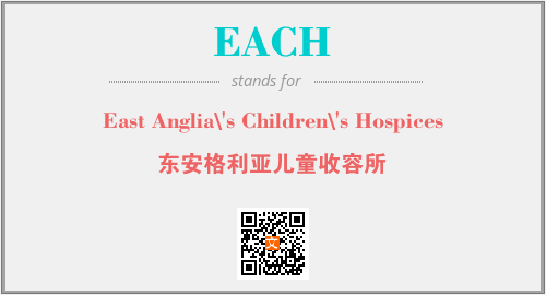 上述内容是“East Anglia\'s Children\'s Hospices”作为“EACH”的缩写,解释为“东安格利亚儿童收容所”时的信息,以及英文缩略词EACH所代表的英文单词,其对应的中文拼音、详细解释以及在英文中的流行度和相关分类、应用领域及应用示例等。