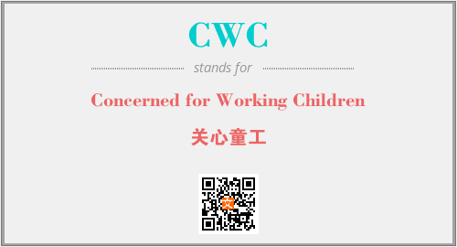 英文缩略词“CWC”经常作为“Concerned for Working Children”的英文缩写来使用,中文表示:“关心童工”。本文将详细介绍英文缩写词CWC所代表英文单词,其对应的中文拼音、详细解释以及在英语中的流行度。此外,还有关于缩略词CWC的分类、应用领域及相关应用示例等。