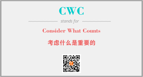 以上为Consider What Counts英文缩略词CWC的中文解释,以及该英文缩写在英语的流行度、分类和应用领域方面的信息。