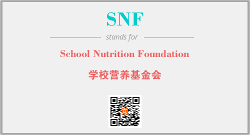 上述内容是“School Nutrition Foundation”作为“SNF”的缩写,解释为“学校营养基金会”时的信息,以及英文缩略词SNF所代表的英文单词,其对应的中文拼音、详细解释以及在英文中的流行度和相关分类、应用领域及应用示例等。