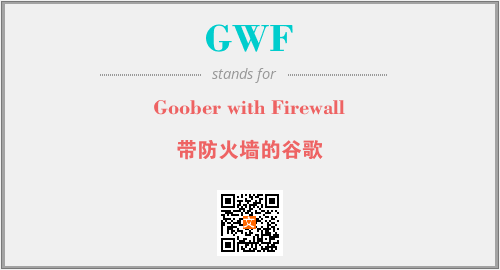 上述内容是“Goober with Firewall”作为“GWF”的缩写,解释为“带防火墙的谷歌”时的信息,以及英文缩略词GWF所代表的英文单词,其对应的中文拼音、详细解释以及在英文中的流行度和相关分类、应用领域及应用示例等。