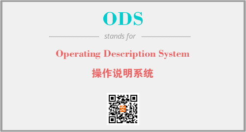 英文缩略词“ODS”经常作为“Operating Description System”的英文缩写来使用,中文表示:“操作说明系统”。本文将详细介绍英文缩写词ODS所代表英文单词,其对应的中文拼音、详细解释以及在英语中的流行度。此外,还有关于缩略词ODS的分类、应用领域及相关应用示例等。