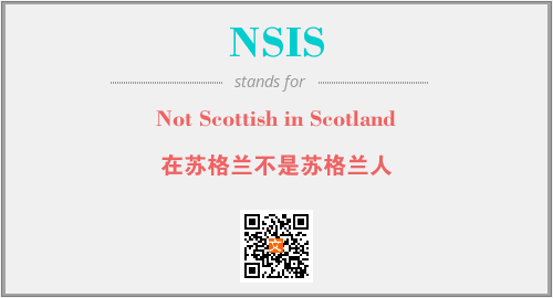 上述内容是“Not Scottish in Scotland”作为“NSIS”的缩写,解释为“在苏格兰不是苏格兰人”时的信息,以及英文缩略词NSIS所代表的英文单词,其对应的中文拼音、详细解释以及在英文中的流行度和相关分类、应用领域及应用示例等。