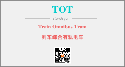 英文缩略词“TOT”经常作为“Train Omnibus Tram”的英文缩写来使用,中文表示:“列车综合有轨电车”。本文将详细介绍英文缩写词TOT所代表英文单词,其对应的中文拼音、详细解释以及在英语中的流行度。此外,还有关于缩略词TOT的分类、应用领域及相关应用示例等。