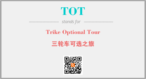 英文缩略词“TOT”经常作为“Trike Optional Tour”的英文缩写来使用,中文表示:“三轮车可选之旅”。本文将详细介绍英文缩写词TOT所代表英文单词,其对应的中文拼音、详细解释以及在英语中的流行度。此外,还有关于缩略词TOT的分类、应用领域及相关应用示例等。