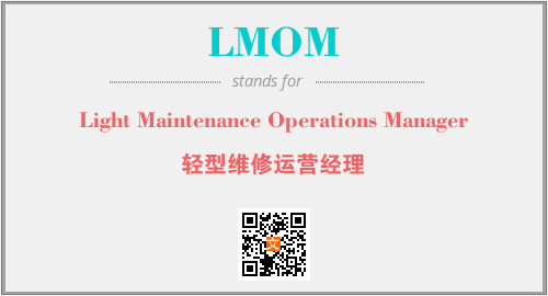 上述内容是“Light Maintenance Operations Manager”作为“LMOM”的缩写,解释为“轻型维修运营经理”时的信息,以及英文缩略词LMOM所代表的英文单词,其对应的中文拼音、详细解释以及在英文中的流行度和相关分类、应用领域及应用示例等。