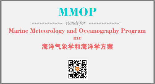 上述内容是“Marine Meteorology and Oceanography Programme”作为“MMOP”的缩写,解释为“海洋气象学和海洋学方案”时的信息,以及英文缩略词MMOP所代表的英文单词,其对应的中文拼音、详细解释以及在英文中的流行度和相关分类、应用领域及应用示例等。