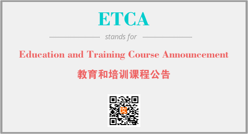 上述内容是“Education and Training Course Announcement”作为“ETCA”的缩写,解释为“教育和培训课程公告”时的信息,以及英文缩略词ETCA所代表的英文单词,其对应的中文拼音、详细解释以及在英文中的流行度和相关分类、应用领域及应用示例等。