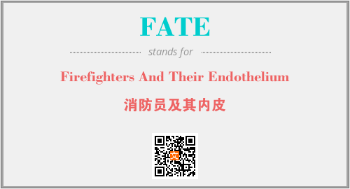 以上为Firefighters And Their Endothelium英文缩略词FATE的中文解释,以及该英文缩写在英语的流行度、分类和应用领域方面的信息。