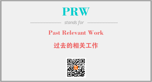 上述内容是“Past Relevant Work”作为“PRW”的缩写,解释为“过去的相关工作”时的信息,以及英文缩略词PRW所代表的英文单词,其对应的中文拼音、详细解释以及在英文中的流行度和相关分类、应用领域及应用示例等。