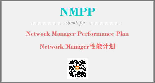 上述内容是“Network Manager Performance Plan”作为“NMPP”的缩写,解释为“Network Manager性能计划”时的信息,以及英文缩略词NMPP所代表的英文单词,其对应的中文拼音、详细解释以及在英文中的流行度和相关分类、应用领域及应用示例等。
