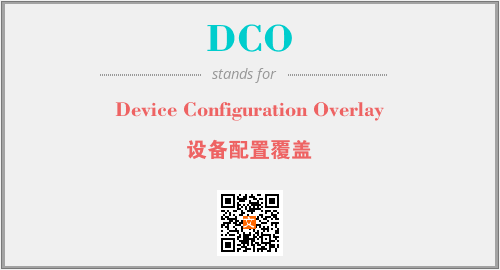 上述内容是“Device Configuration Overlay”作为“DCO”的缩写,解释为“设备配置覆盖”时的信息,以及英文缩略词DCO所代表的英文单词,其对应的中文拼音、详细解释以及在英文中的流行度和相关分类、应用领域及应用示例等。