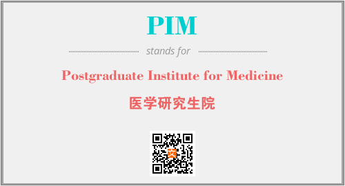 英文缩略词“PIM”经常作为“Postgraduate Institute for Medicine”的英文缩写来使用,中文表示:“医学研究生院”。本文将详细介绍英文缩写词PIM所代表英文单词,其对应的中文拼音、详细解释以及在英语中的流行度。此外,还有关于缩略词PIM的分类、应用领域及相关应用示例等。