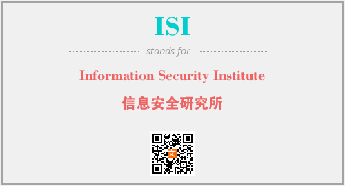 上述内容是“Information Security Institute”作为“ISI”的缩写,解释为“信息安全研究所”时的信息,以及英文缩略词ISI所代表的英文单词,其对应的中文拼音、详细解释以及在英文中的流行度和相关分类、应用领域及应用示例等。