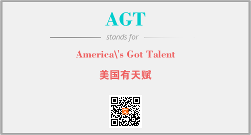 以上为America\'s Got Talent英文缩略词AGT的中文解释,以及该英文缩写在英语的流行度、分类和应用领域方面的信息。