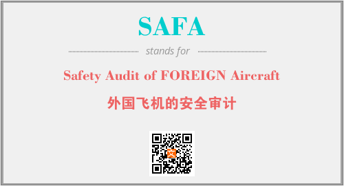 英文缩略词“SAFA”经常作为“Safety Audit of FOREIGN Aircraft”的英文缩写来使用,中文表示:“外国飞机的安全审计”。本文将详细介绍英文缩写词SAFA所代表英文单词,其对应的中文拼音、详细解释以及在英语中的流行度。此外,还有关于缩略词SAFA的分类、应用领域及相关应用示例等。