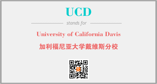 上述内容是“University of California Davis”作为“UCD”的缩写,解释为“加利福尼亚大学戴维斯分校”时的信息,以及英文缩略词UCD所代表的英文单词,其对应的中文拼音、详细解释以及在英文中的流行度和相关分类、应用领域及应用示例等。