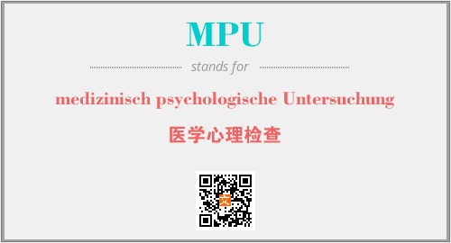 英文缩略词“MPU”经常作为“medizinisch psychologische Untersuchung”的英文缩写来使用,中文表示:“医学心理检查”。本文将详细介绍英文缩写词MPU所代表英文单词,其对应的中文拼音、详细解释以及在英语中的流行度。此外,还有关于缩略词MPU的分类、应用领域及相关应用示例等。