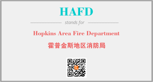 上述内容是“Hopkins Area Fire Department”作为“HAFD”的缩写,解释为“霍普金斯地区消防局”时的信息,以及英文缩略词HAFD所代表的英文单词,其对应的中文拼音、详细解释以及在英文中的流行度和相关分类、应用领域及应用示例等。