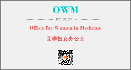 上述内容是“Office for Women in Medicine”作为“OWM”的缩写,解释为“医学妇女办公室”时的信息,以及英文缩略词OWM所代表的英文单词,其对应的中文拼音、详细解释以及在英文中的流行度和相关分类、应用领域及应用示例等。