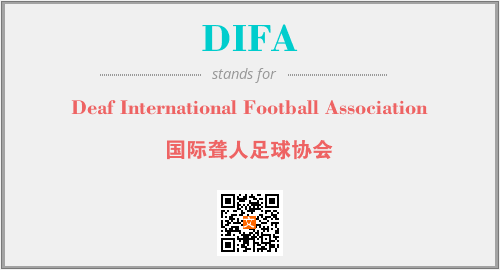 上述内容是“Deaf International Football Association”作为“DIFA”的缩写,解释为“国际聋人足球协会”时的信息,以及英文缩略词DIFA所代表的英文单词,其对应的中文拼音、详细解释以及在英文中的流行度和相关分类、应用领域及应用示例等。