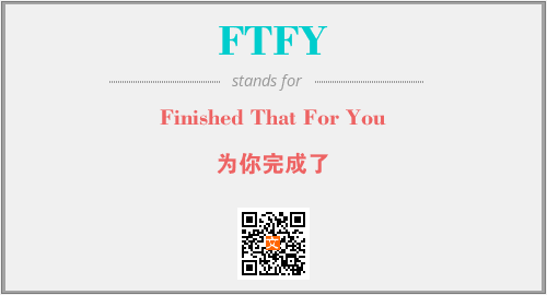 上述内容是“Finished That For You”作为“FTFY”的缩写,解释为“为你完成了”时的信息,以及英文缩略词FTFY所代表的英文单词,其对应的中文拼音、详细解释以及在英文中的流行度和相关分类、应用领域及应用示例等。